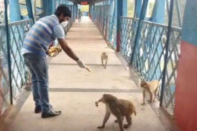 फरीदाबाद : लॉक डाउन में फरीदाबाद रेलवे स्टेशन पर भूख के चलते चार बंदरों की मौत की खबर सोशल मीडिया पर वायरल होने के बाद फरीदाबाद के समाजसेवी जयराज बजाज और जसवंत सैनी मदद के लिए आगे आए हैं दोनों समाजसेवियों ने प्रण लिया है कि जब तक फरीदाबाद शहर में लॉक डाउन रहेगा तब तक वह किसी भी बंदर को भूखा नहीं रहने देंगे। जिसकी शुरुआत आज से ही कर दी गई है फरीदाबाद रेलवे स्टेशन पर सैकड़ों बंदरों को भरपेट किले खिलाए गए इसके अलावा 4 नंबर आयकर विभाग दफ्तर के आसपास और अरावली क्षेत्र पर भी रहने वाले बंदरों को भरपेट केले खिलाए। भूखे बंदरों को केले खिलाकर पुण्य का काम कर रहे समाजसेवियों के साथ रेलवे स्टेशन पर तैनात पुलिसकर्मी भी नजर आए और उन्होंने भी अपने हाथों से बंदरों को केले खिलाएं।